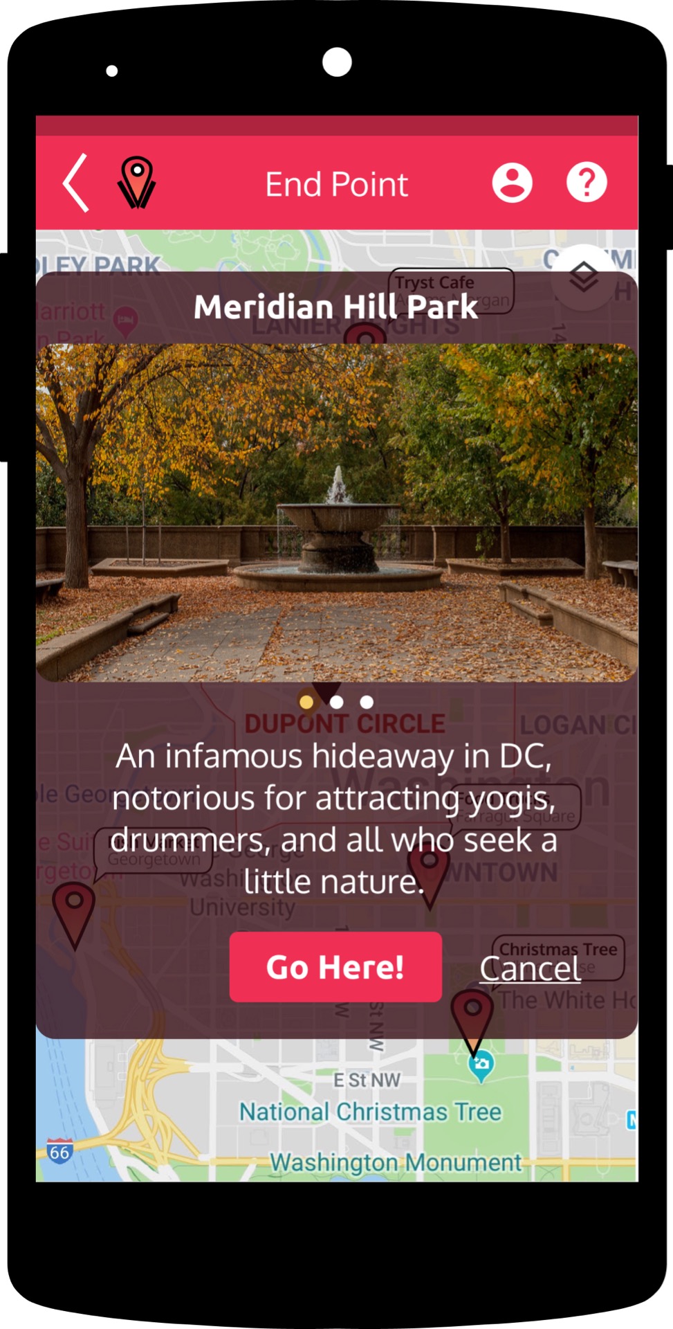 I began the process by looking around to see what other scavenger hunt apps were available. Two trends emerged in how these apps were set up: one focusing on using geolocation to navigate to a hidden cache ("treasure hunt") and the other offering a set of clues and tasks that created an interactive experience.